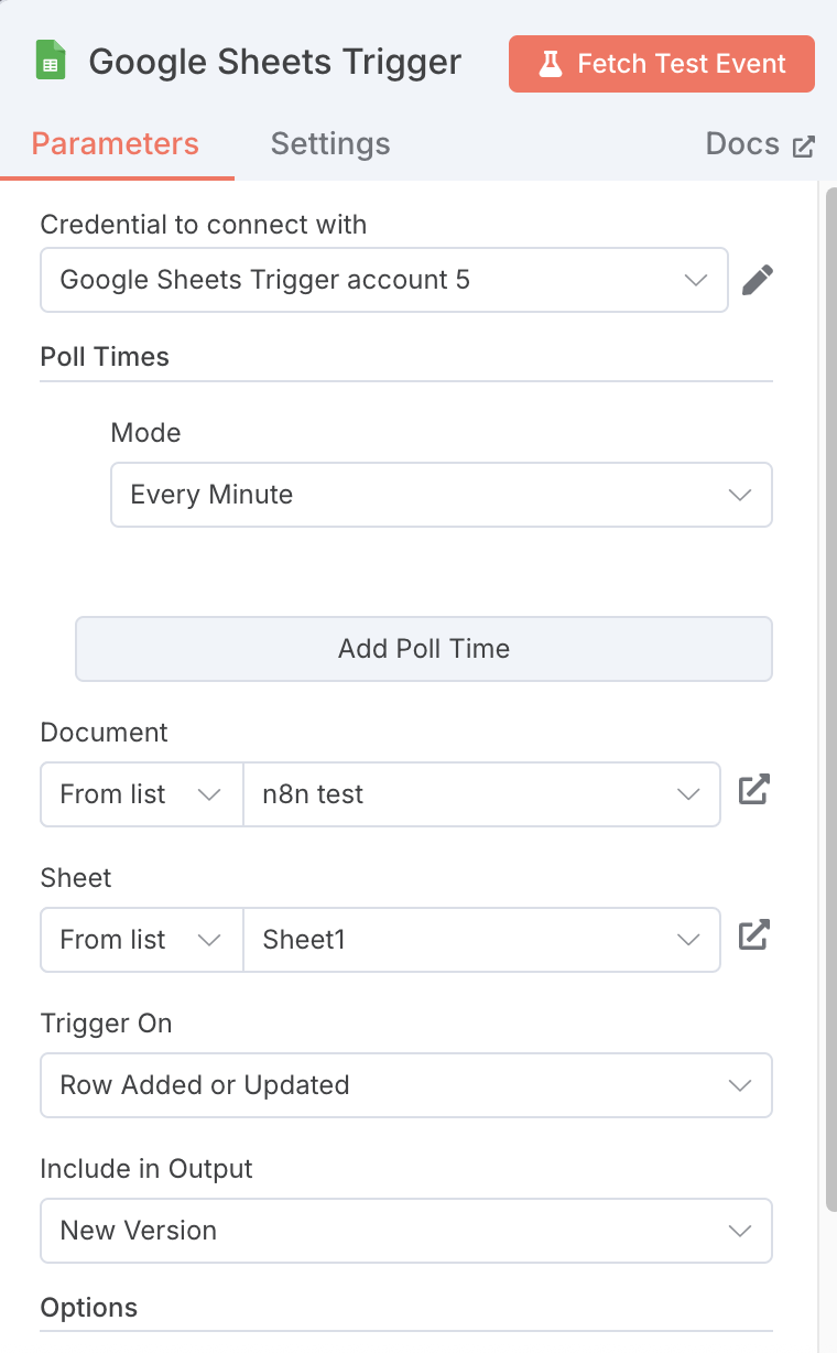 - Google Sheets integration: Check n8n’s Google Sheets node documentation